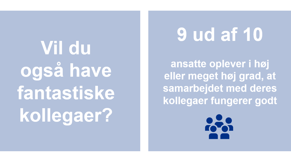 Høj trivsel er en forudsætning for at være en god arbejdsplads – og det vil vi være. Derfor måler vi trivslen hos vores ansatte to gange om året, for at følge med i hvad der går godt, og hvor vi skal gøre det bedre.